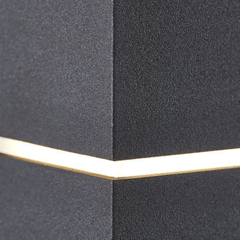 With light outlet upwards, downwards and through the decorative side channel. Dimmable in three steps with external wall switches, energy-saving and sustainable thanks to the use of LED technology.